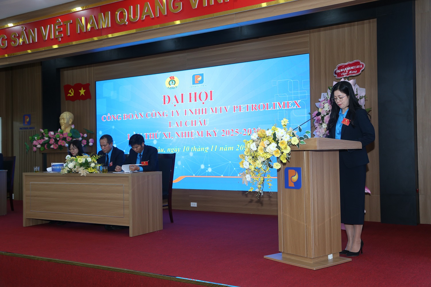 Thay mặt Ban Chấp hành Công đoàn Petrolimex Lai Châu khóa X đồng chí Đàm Văn Trung, Phó chủ tịch, Phụ trách Công đoàn Công ty trình bày báo cáo Tổng kết công tác Công đoàn nhiệm kỳ 2023-2025. Trong nhiệm kỳ vừa qua, Công đoàn Petrolimex Lai Châu đã khẳng định được vị trí, vai trò của tổ chức Công đoàn.