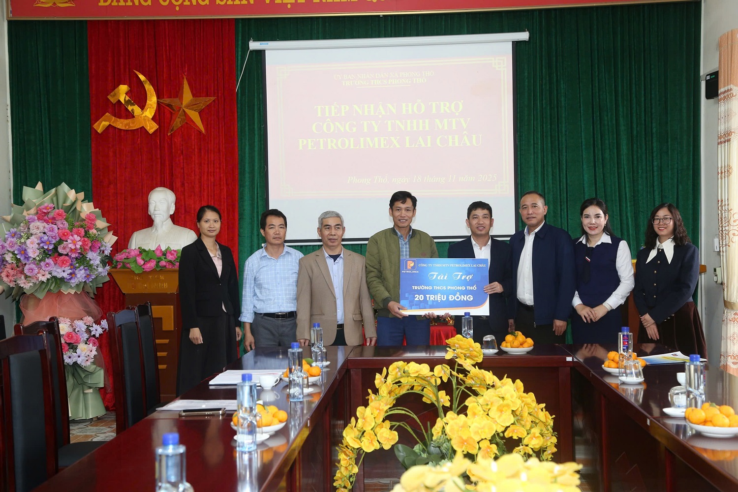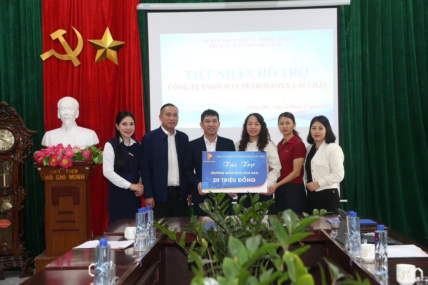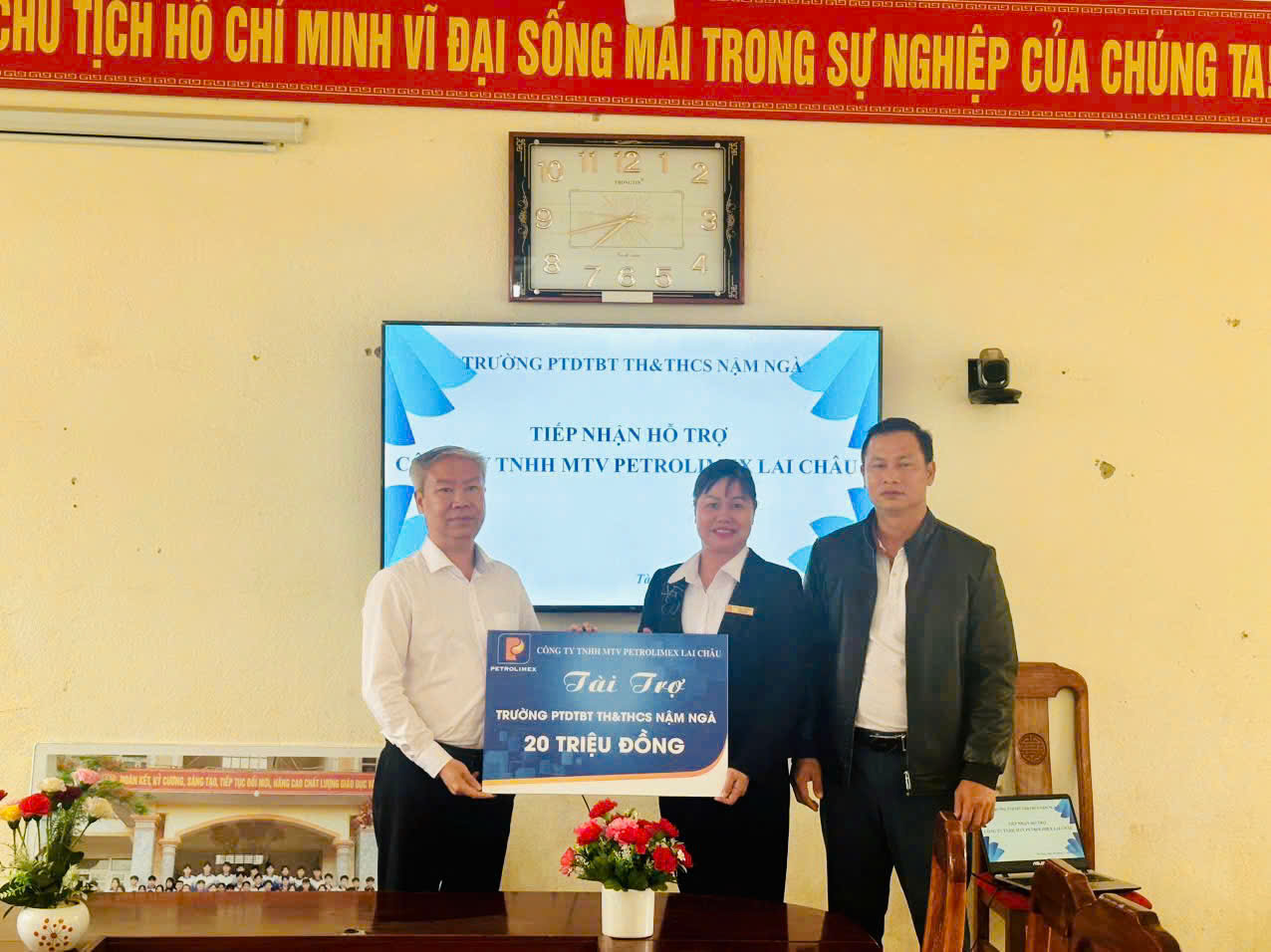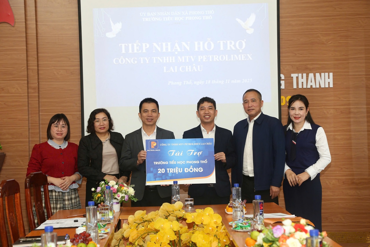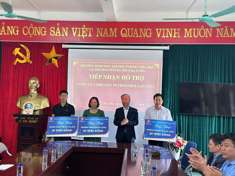Trong Tháng Tri ân thầy cô năm 2025, Petrolimex Lai Châu trao tặng 240 triệu đồng đến 12 trường học, mỗi trường 20 triệu đồng, để nâng cấp cơ sở vật chất, bổ sung trang thiết bị và tạo điều kiện tốt hơn cho thầy cô giảng dạy, học sinh học tập.